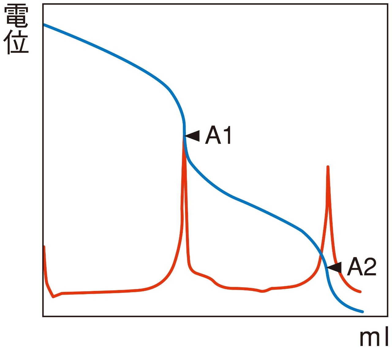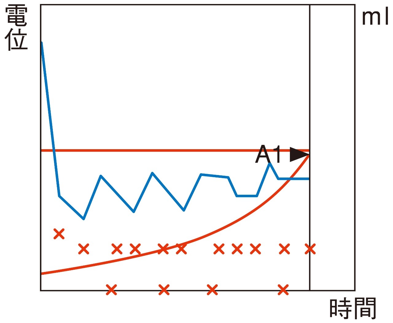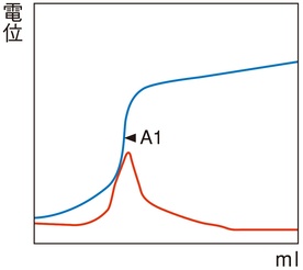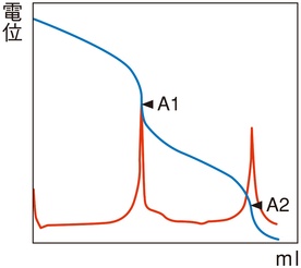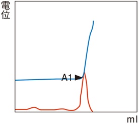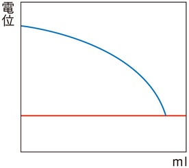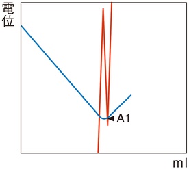 変曲点法で終点が検出されない場合に、設定電位を終点とする方法です。