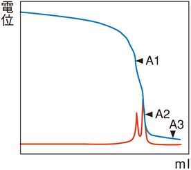 設定電位に合わせるよう設定電位との電位差を基に滴定し、設定電位に達した場合に終了します。連結滴定の前処理として使用します。
