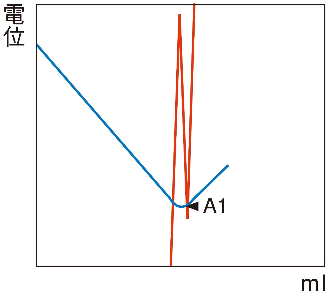 電気伝導度滴定法※1 で、V字の滴定カーブの接線の交点を求める方法です。