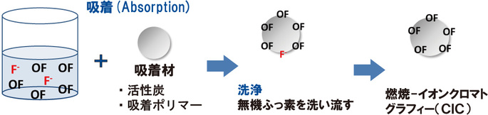 PFOA、PFOSなどのPFAS類の量を把握するためには、無機ふっ素化合物との分離が必要です。